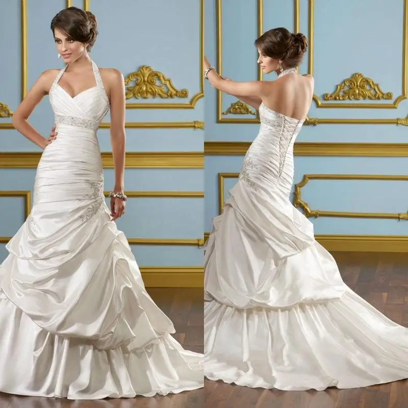 Also, some designs can provide the required support for a larger bust. Fashion lace ball gown wedding dresses halter neck beaded puffy wedding dress appliques satin sweep train bridal gowns design wedding dress famous wedding … limor rosen halter top wedding dress spring 2018. We have best wedding dresses 2021 on sale.